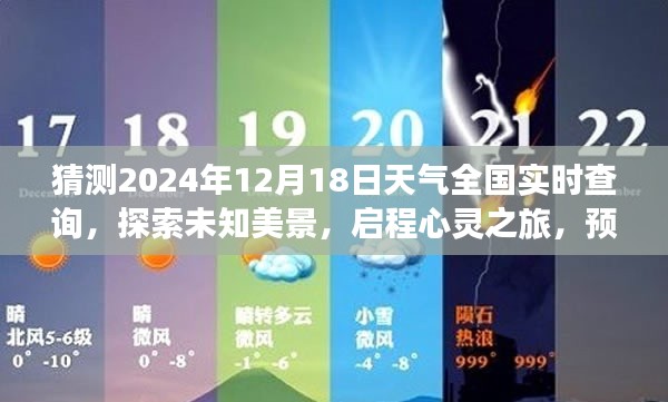 摘要:预计2024年12月18日全国天气实时查询,探索未知美景的旅程即将启程。心灵之旅将带你领略梦幻般的天气之旅。预测显示,当天全国大部分地区将迎来晴朗天气,适宜旅游和探索。不妨借此机会启程,感受未知世界的魅力,享受美好的天气带来的愉悦心情。