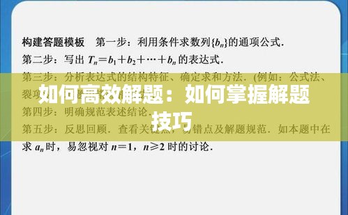 高效解题的关键在于理解题目、制定计划、分解问题、利用技巧、避免错误、保持专注和耐心、实践反思以及寻求帮助。通过不断练习和改进,你可以提高解题能力,更快、更准确地找到问题的答案。