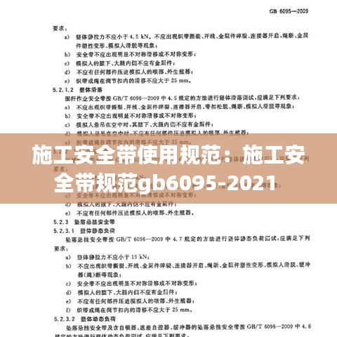 1. 安全带的质量应符合国家标准GB 6095-2009《安全带》的要求,具备足够的强度和耐久性。