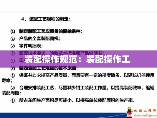 装配操作规范是确保产品质量和生产效率的重要保障。通过严格执行装配操作规范,可以降低生产成本,提高产品竞争力。因此,各相关从业人员应高度重视装配操作规范,将其作为日常工作的重要组成部分,共同努力推动制造业的持续发展。