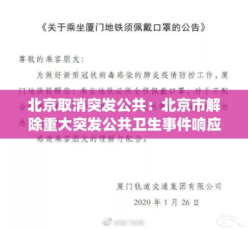 近日,北京市政府宣布取消突发公共事件应急响应,这一决策引起了广泛关注。据了解,北京市取消突发公共事件应急响应是基于以下几方面考虑: