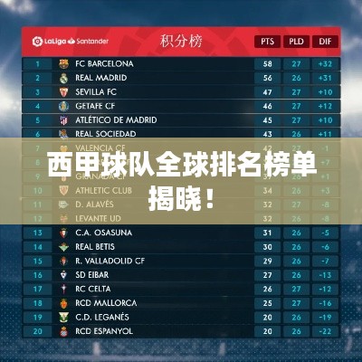 足球是全球最受欢迎的体育项目之一,而西班牙足球甲级联赛(La Liga)更是备受关注,西甲联赛拥有一些世界上最强大的足球队,这些队伍在世界范围内的排名也非常靠前,本文将介绍西甲各队的世界排名榜。