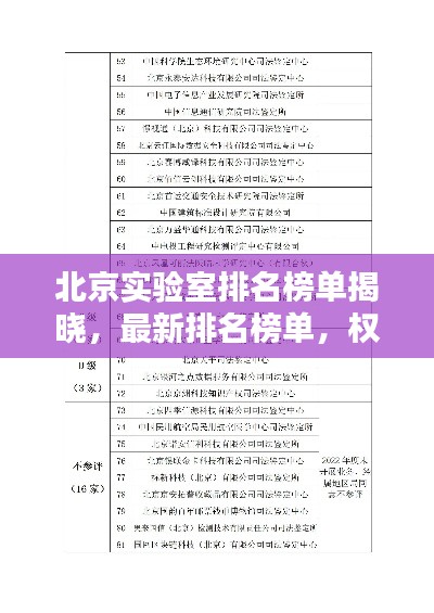 随着科技的不断进步和发展,实验室的研究水平和影响力已经成为衡量一个城市科研实力的重要标志,北京作为我国科技教育的重要基地,拥有众多高水平的实验室,本文将为您介绍北京各大实验室的最新排名榜。