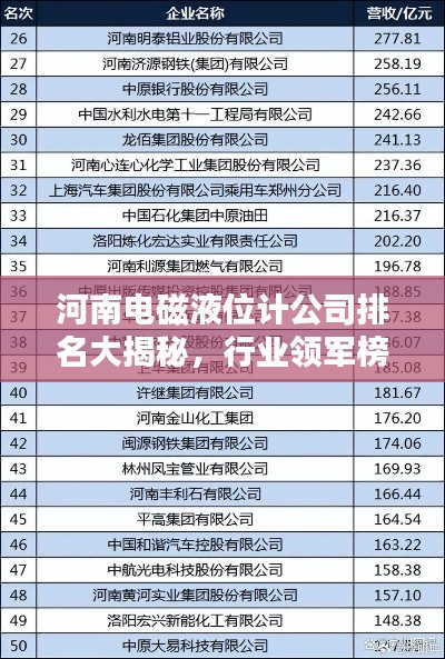 随着工业自动化程度的不断提高,电磁液位计作为一种重要的工业测量仪表,在各个领域得到了广泛的应用,河南作为中国的工业大省,拥有众多的电磁液位计生产企业,本文将对河南电磁液位计公司进行排名,以便为采购商和消费者提供参考。