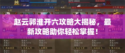 赵云和郭淮是三国时期蜀汉的重要将领,以其卓越的军事才能和智谋著称,在游戏中,这两位将领的组合往往能发挥出强大的战斗力,本文将为大家带来关于赵云郭淮开6的最新攻略,帮助大家在游戏中更好地运用这两位将领,取得更多胜利。