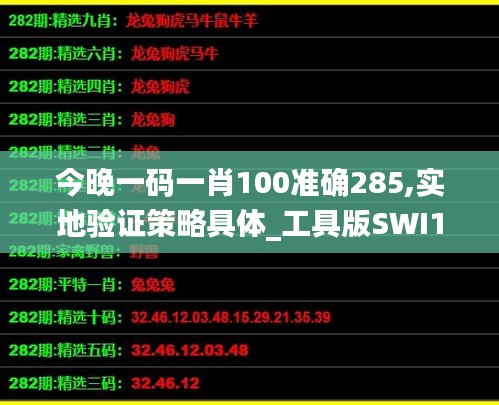 在当今的网络环境中,信息呈现出极大的丰富性与复杂性,尤其是在博彩和游戏领域,参与者的选择与策略显得尤为重要。如何在竞争激烈的市场中找到有效的方法成为了众多玩家的关注焦点。今晚一码一肖100准确285,实地验证策略具体_工具版SWI13.8正是这样一个工具,能够帮助玩家在信息泛滥的情况下,准确掌握趋势、分析数据,从而做出更为明智的投注决策。