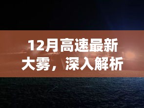 摘要:,,关于12月高速最新大雾的解析,大雾特性表现为能见度低、影响范围广、持续时间较长。在高速公路上行驶时,司机需注意减速慢行、保持车距。大雾天气下行驶的体验会受到一定影响,如行车速度减缓、交通拥堵等。建议相关部门加强气象监测和预警,提高道路安全。